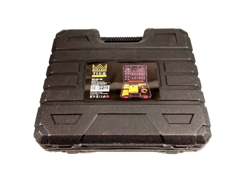Aku vrtací šroubovák s příklepem, 2 baterie, kufřík + příslušenství, TIGO MD-05