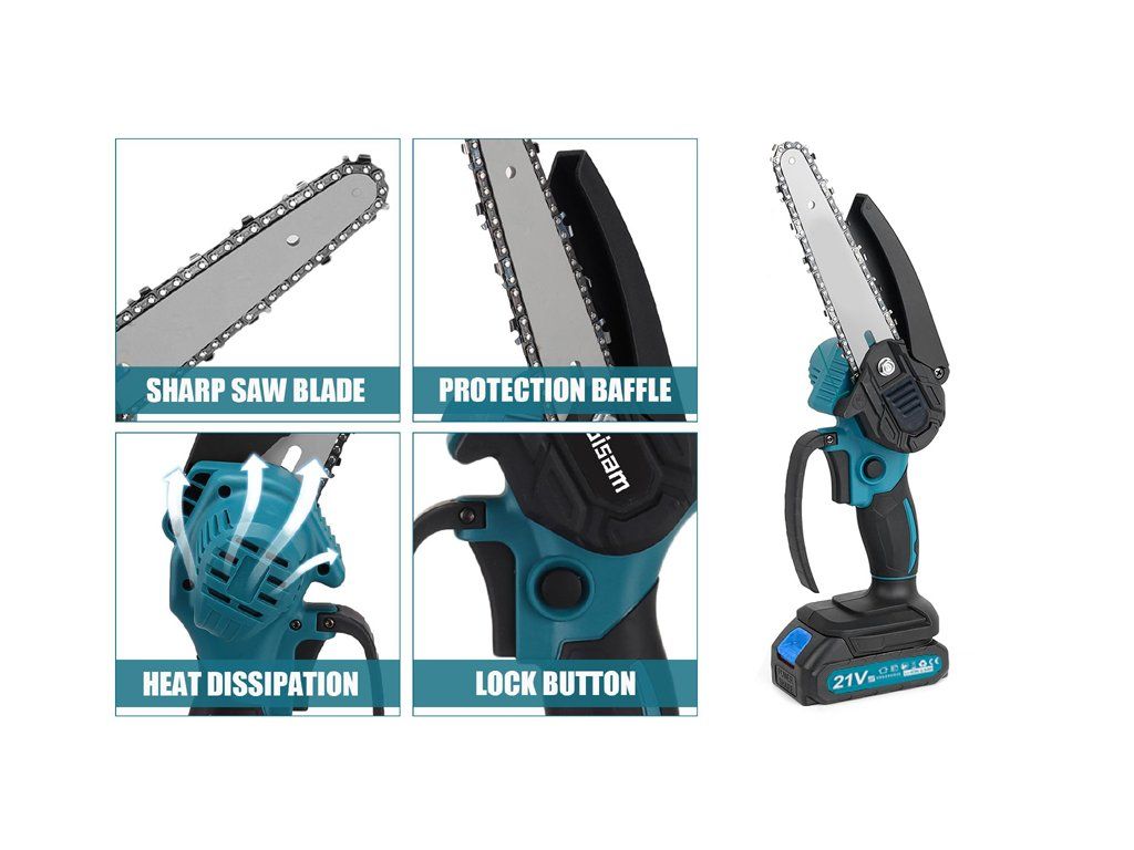 Řetězová pila na AKU baterie nesmí chybět ve výbavě žádného zahradníka. Pilka je opatřena krytem řetězu chránícímu proti případnému poranění a bezpečnostní pojistkou proti nechtěnému stisknutí spínače. Pilka je dodávána v praktickém kufříku.