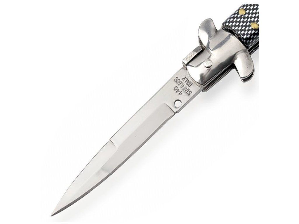 Čepel nového Italského vystřelovacího nože "STILETTO" je kvalitní tenkou čepelí o délce 9,5 cm která se svým provedením nenechá zastínit svými italskými předky. Čepel je opatřená výbrusem a falešným ostřím na hřbetě, který podtrhuje tradici této bodné čepele z italské historie.