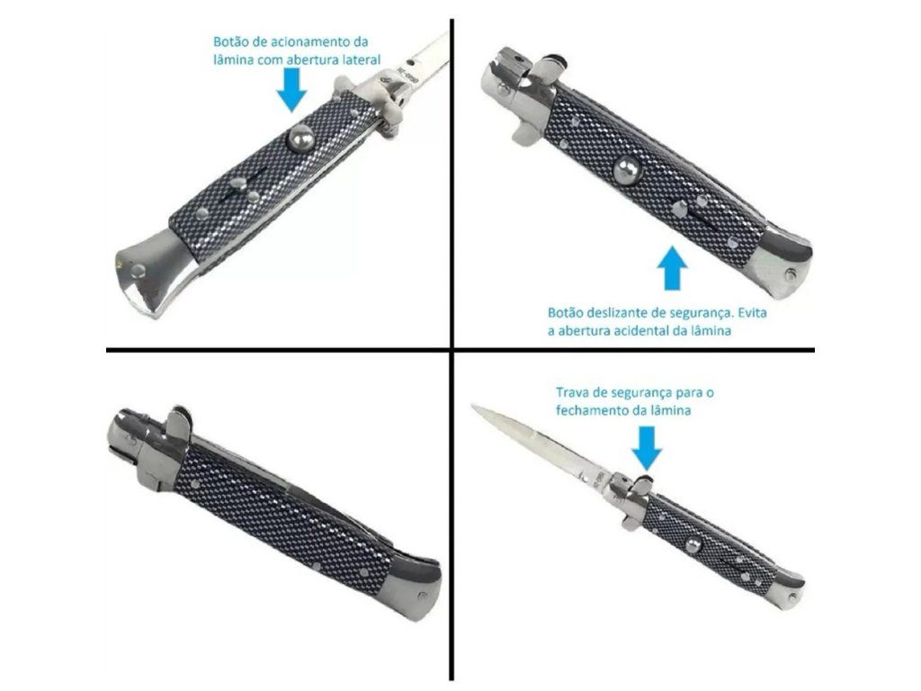 - Pomocí pojistky snadno ovladatelné palcem lze nůž skrytý v dlani kdykoliv pohotově otevřít a připravit k použití