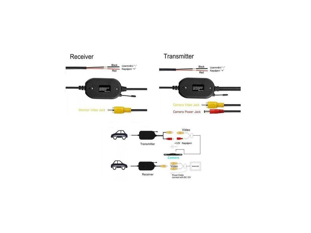 Pomocí vysílače a přijímače docílíte bezdrátového přenosu signálu z couvací kamery do monitoru (autoradia, zpětného zrcátka s displejem, apod). Šetří čas a zároveň i zařízení zjednodušuje instalaci.