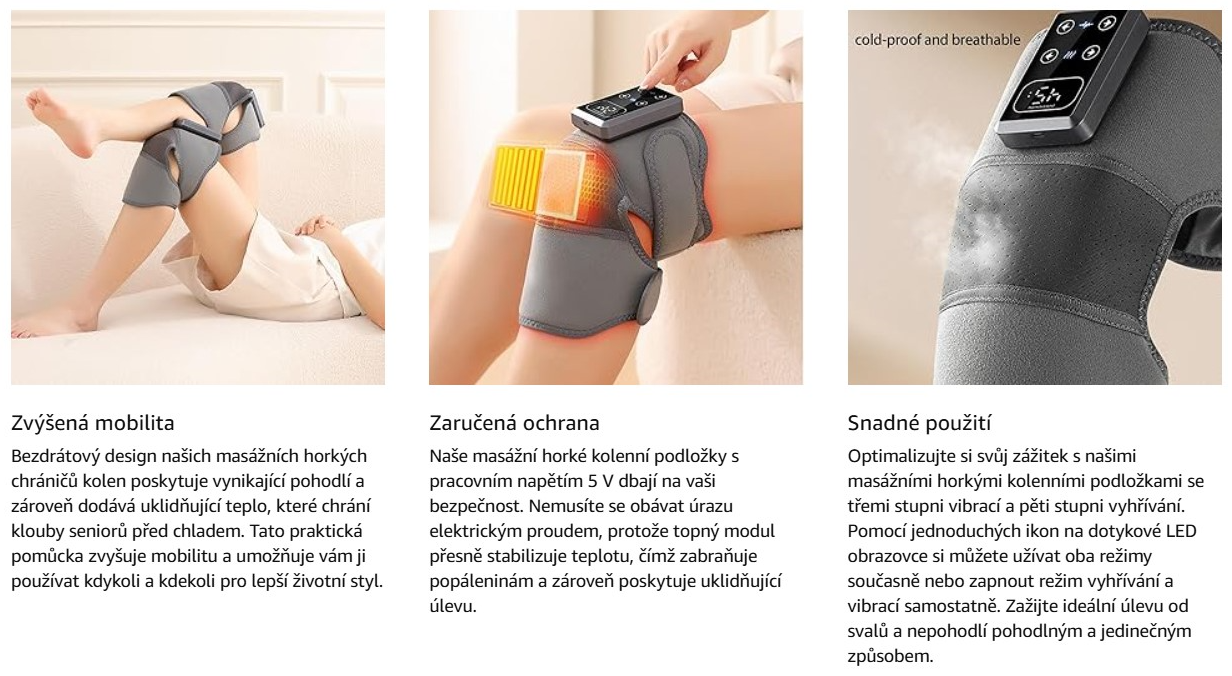 - Účinné terapeutické funkce: Kombinuje infračervené teplo, vibrační masáž a kompresní podporu pro úlevu od bolesti kloubů a svalů.