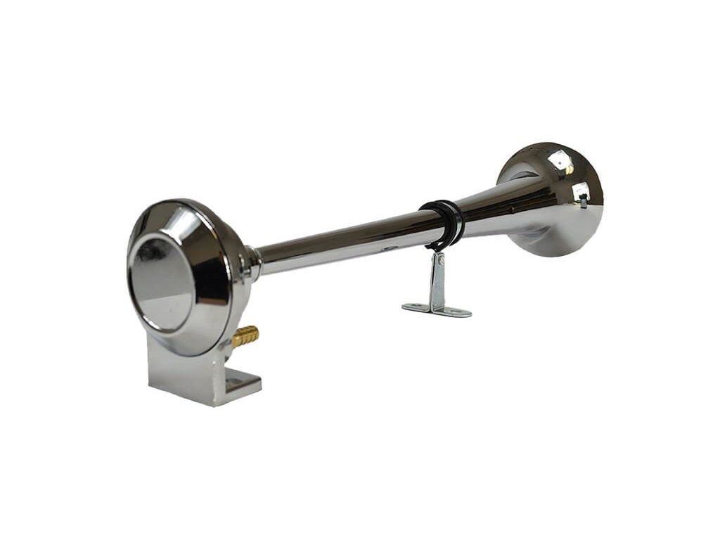 Fanfára v odolném kovovém provedení s pochromovaným povrchem. Díky kvalitnímu elektrickému kompresoru má fanfára velmi rychlou odezvu. Doporučené použití je na nákladní auta, dodávky, čluny a pod.. Součástí balení je kromě fanfáry elektrický kompresor, relé, vzduchová hadice a spojovací šrouby. Kvalitní kovové provedení v barvě chromu.