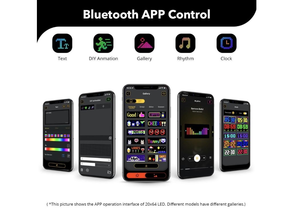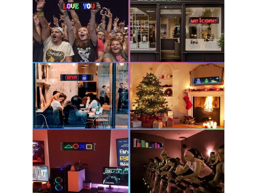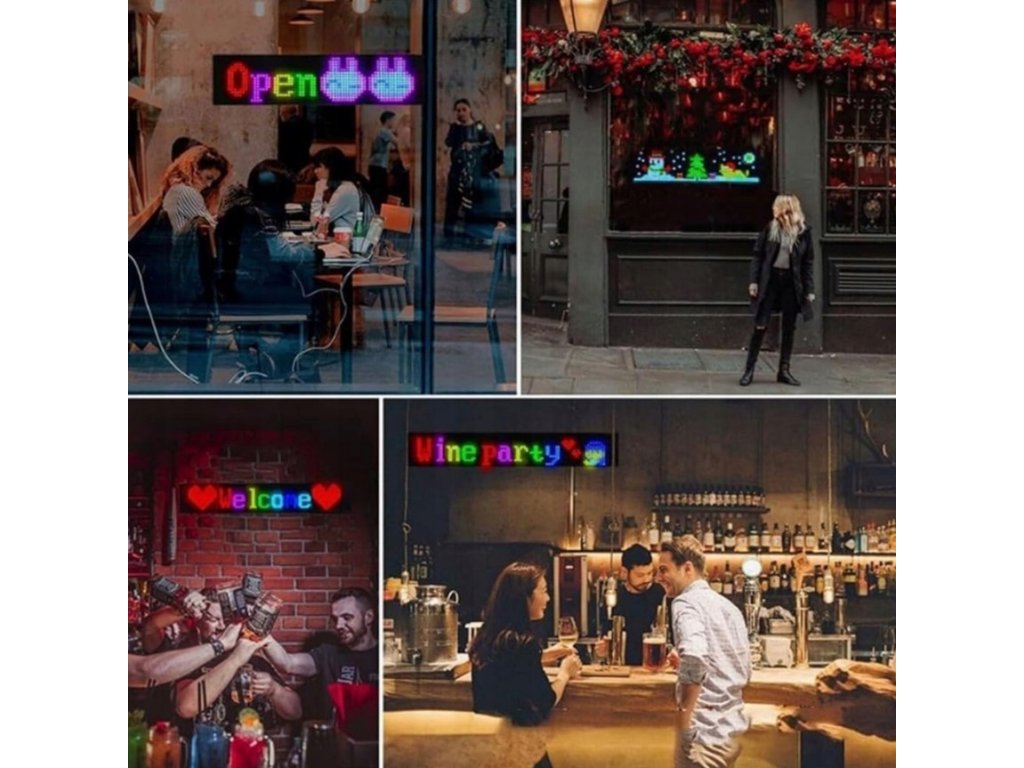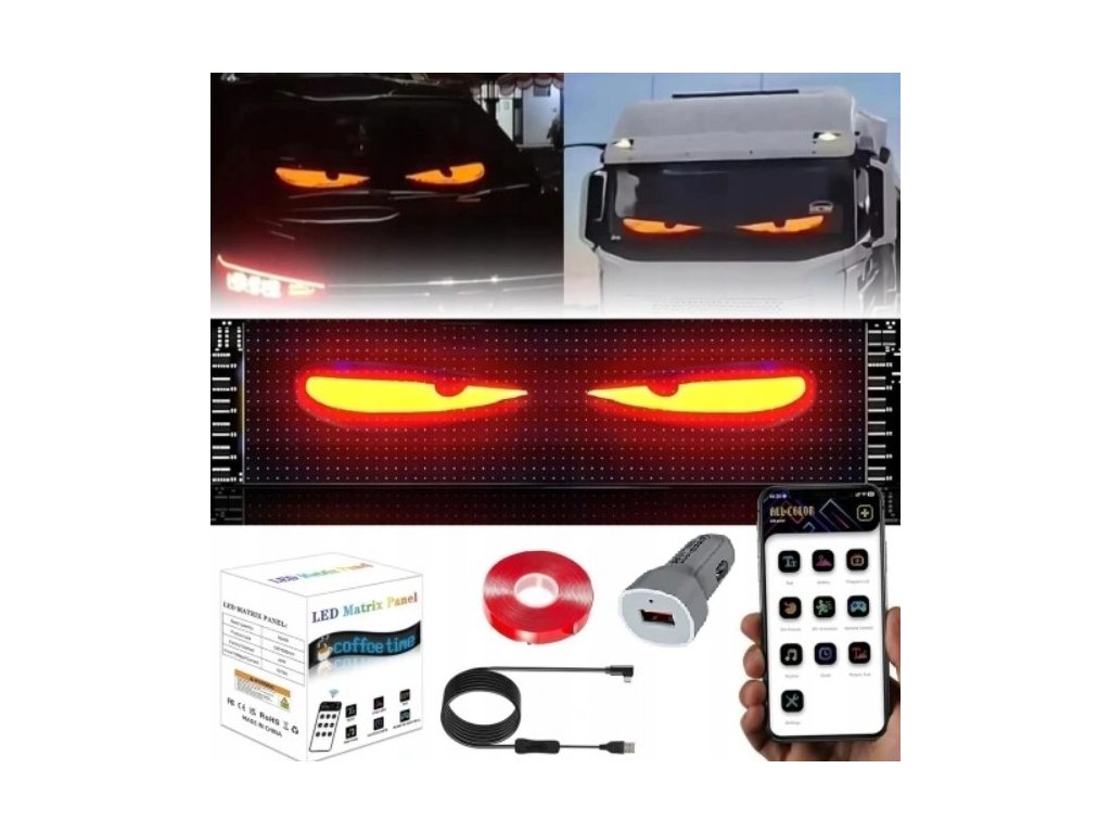 RGB LED Matrix Panel s LED diodami. Rozměr 20 x 90 cm. Celý panel je vyroben z umělých materiálů, takže je vysoce flexibilní a odolný vůči ohybům. Svícení je možné ovládat přes přibalený ovladač, nebo pomocí mobilní aplikaci, kde je také možné vytvářet své vlastní nápisy a designy. Napájení pomocí USB, kabel součástí balení.