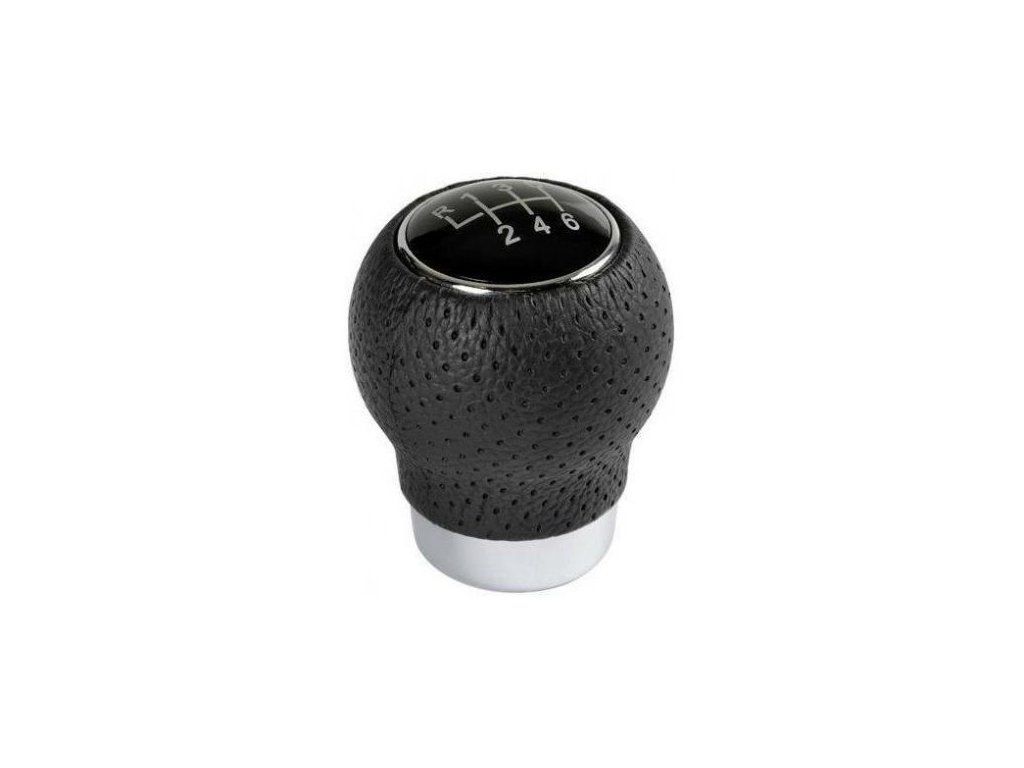 Koncovka řadící páky, černá kůže s černým prošíváním a pochromovaným hliníkem