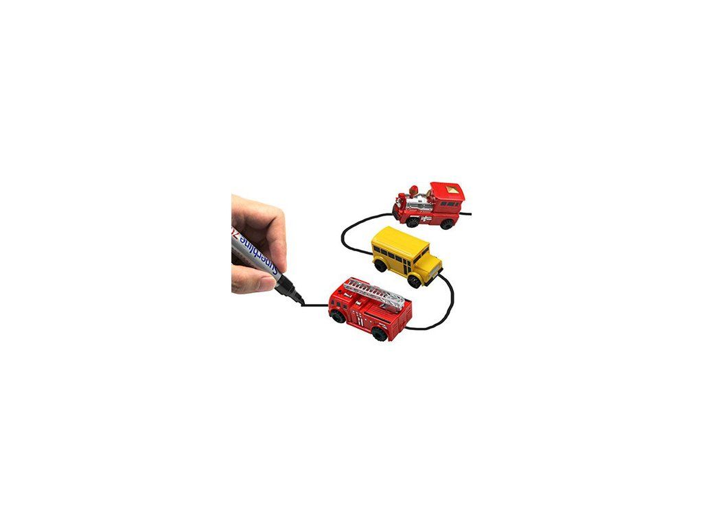 Auto totiž pojede kam budete chtít, stačí mu pouze nakreslit dráhu a jede tam, kam si nakreslíte. Může za to totiž magická fixa, která mu jasně určí směr. Jakmile začnete, pomocí fixu, kreslit tlustou čáru na bílý papír, tank se rozjede přesně tam, kam povede cestička. Pokud čáru uzavřete bude tank automaticky obíhat přesně podle namalovaného tvaru. Ke správné jízdě auta budete muset nakreslit tlustou čáru, nejméně 4mm a nejvíce 10mm, linka nesmí mít ostrý úhel. Pokud umístíte auto mimo nakreslenou dráhu, jezdí pouzev kruzích, dokud nenajde svoji linku. Auto má totiž optický senzor, který čte černou čarou nakreslenou na bílém papíře. Dejte sbohem neskladným autodráhám a mějte autíčko spolu s magickým fixem všude s sebou.