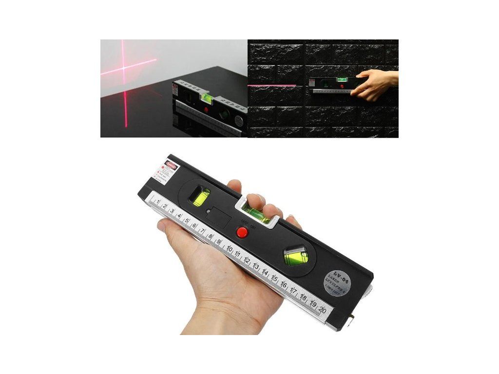 Laserová vodováha, řešení pro měření roviny a vzdálenosti. Ideální pro domácí a řemeslné práce všech druhů. S tímto měřícím zařízením bude pověšený obraz či perfektně sestavená skříň hračkou. Zařízení obsahuje 100 cm svinovací metr, vertikální a horizontální LED podsvícenou bublinkovou vodováhu a křížový laser. Laser vyzařuje úzkou a dobře viditelnou stopu