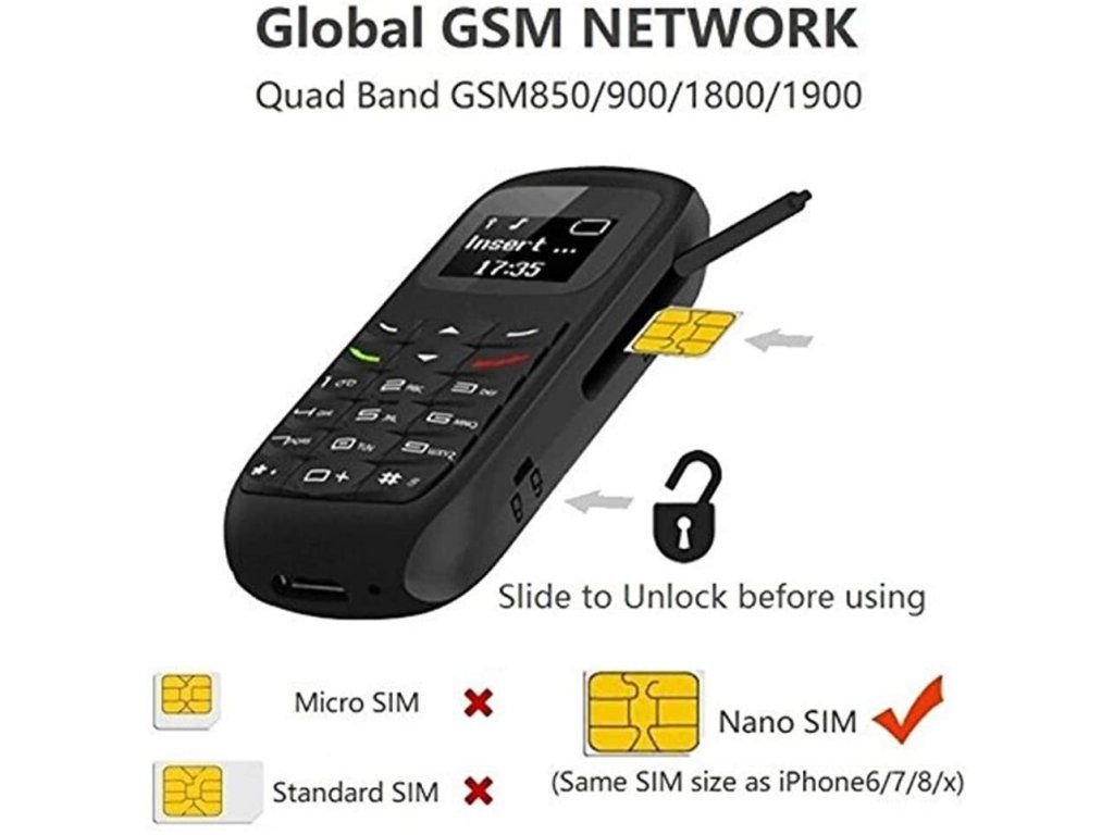 Miniaturní mobilní telefon s klipsou na ucho. Bez vložené sim karty jej můžete použít jako bezdrátové bluetooth handsfree , po vložení sim karty jako samostatný telefon.