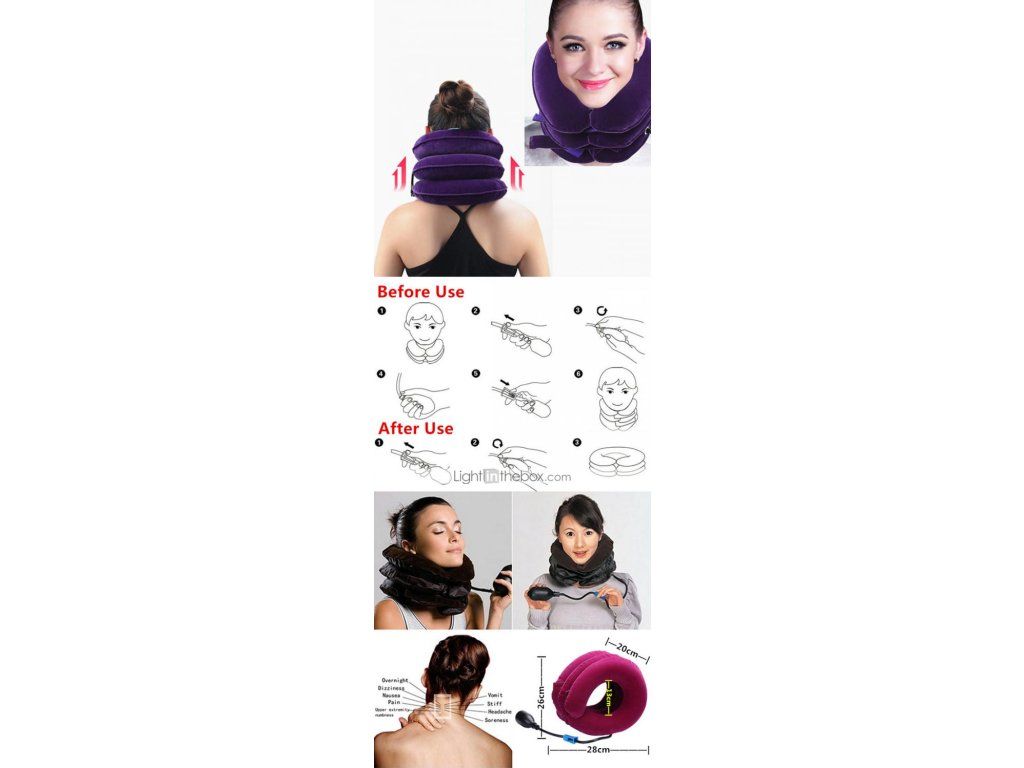 Nafukovací límec je komfortní zdravotní pomůcka, která usnadní účinnou fixaci celého krku a horní části páteře. Součástí výrobku je gumový balónek, kterým si můžete regulovat množství vzduchu, tak jak vyžaduje Váš zdravotní a momentální stav. S límcem zajistíte dokonalou ergonomii oblasti páteře.