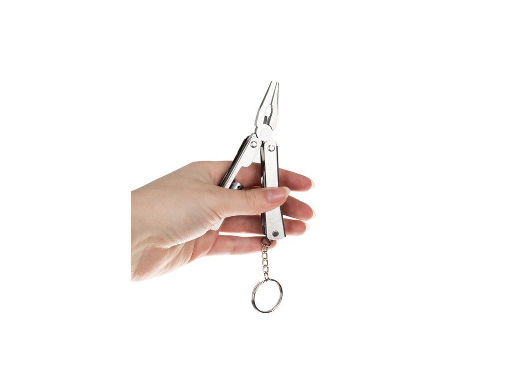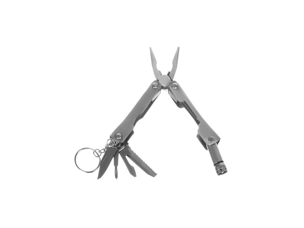 - multitool 7v1 - kleště, baterka, pilka, otvírák, křížový šroubovák, nůž, kruh - klíčenka