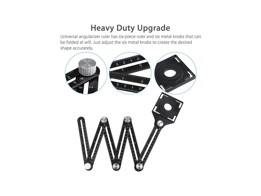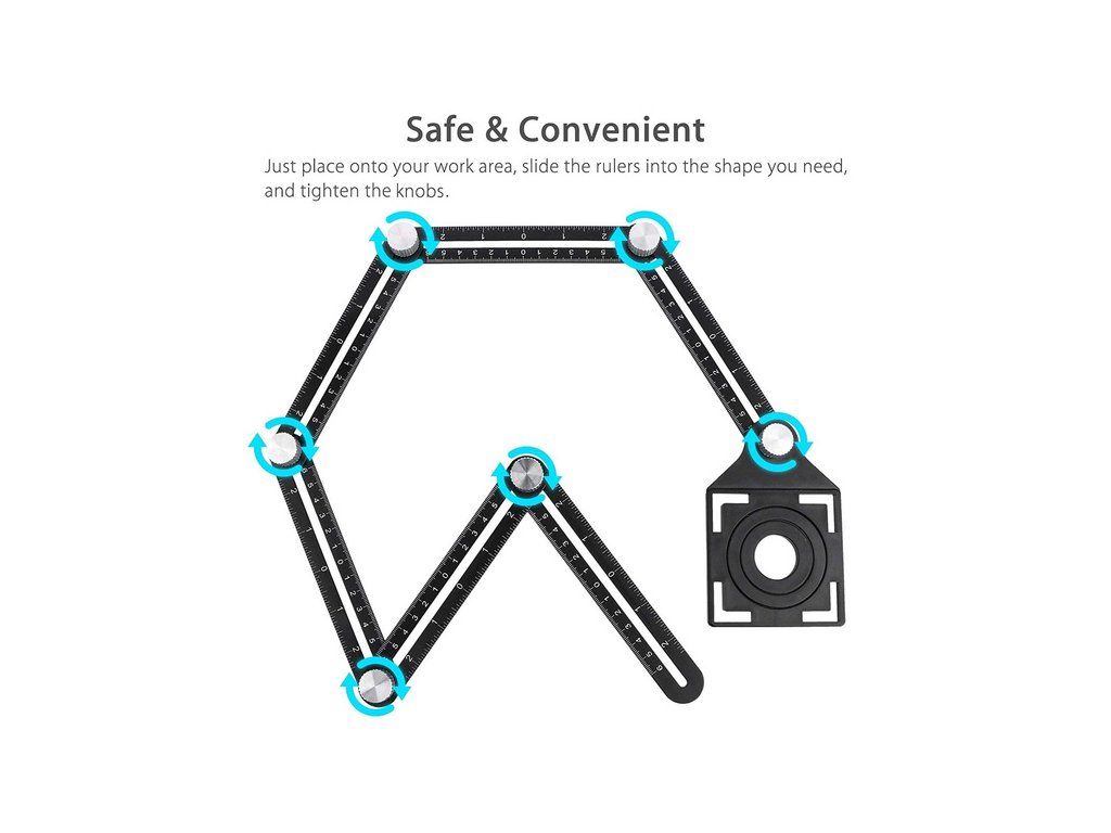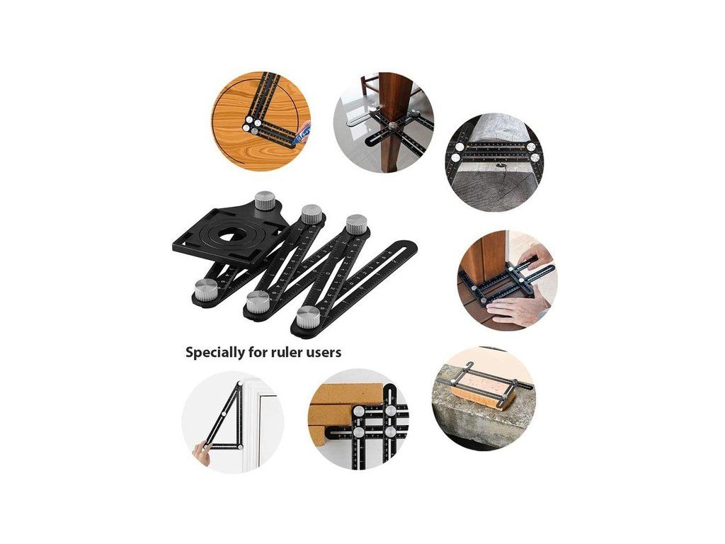 Víceúčelové pravítko je skvělý nástroj pro vytváření složitých tvarů, úhlů a opakovaných řezů. Měření v centimetrech a palcích. Úhlové pravítko se snadno skládá a využívá jedinečný utahovací mechanismus, který zvládnete i jednou rukou. Ideální pomocník pro obkladače, podlaháře a podobné řemesla. Dokonale označí místo pro vyříznutí otvoru v dlaždicích a také reprodukuje asymetrické tvary. Odolné kovové pravítko s trvalou stupnicí. Měřidlo otvorů z prvotřídního plastu.