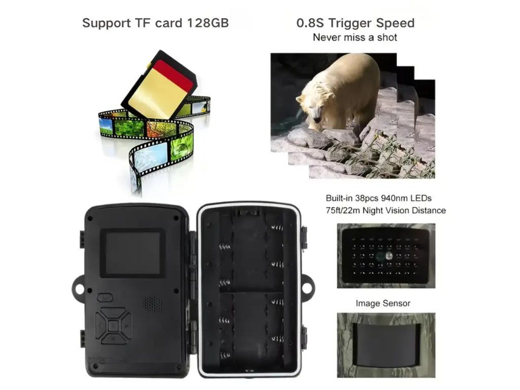 Tato stopová kamera (také nazývaná vyhledávací nebo lovecká kamera) je vyhledávací záznamové zařízení. Je vybaven vysoce citlivým PIR infračerveným senzorem. Když se lidské tělo ( nebo zvíře ) pohne a způsobí změnu teploty vnějšího prostředí, spustí se a automaticky pořídí snímky nebo nahraje videa ve vysokém rozlišení.