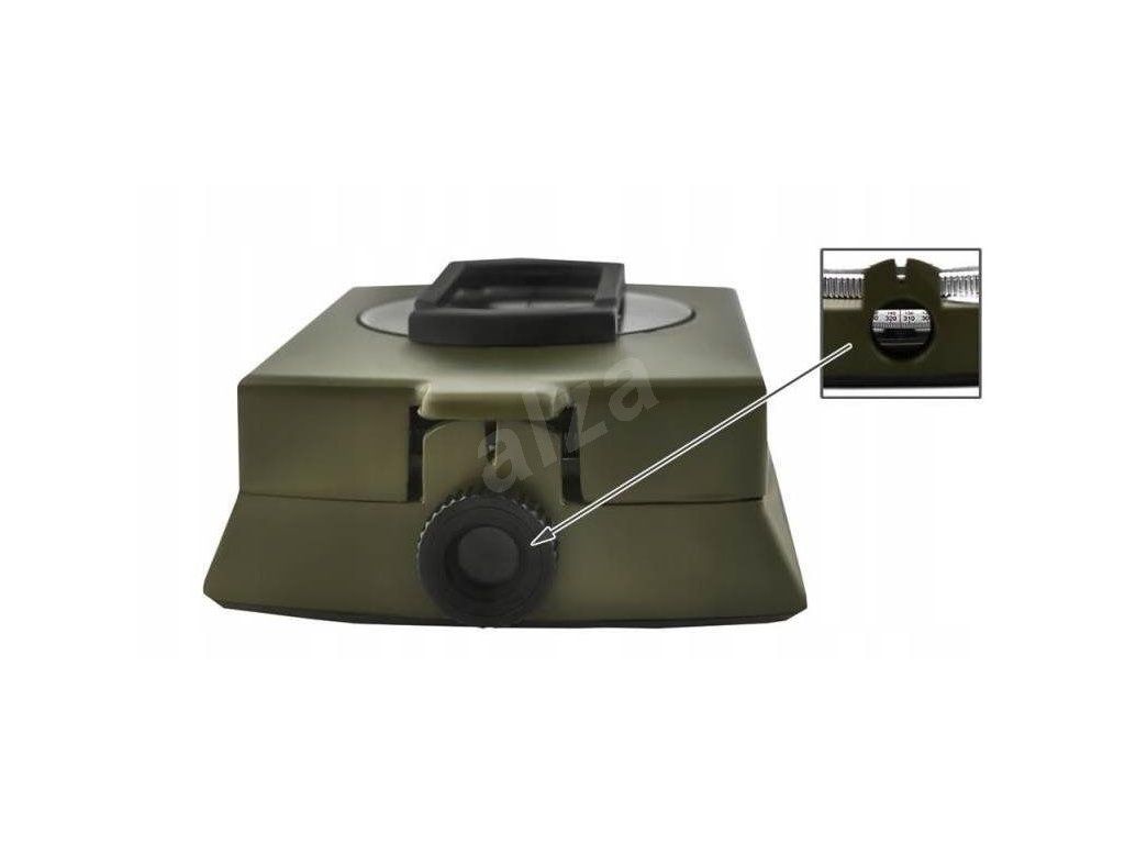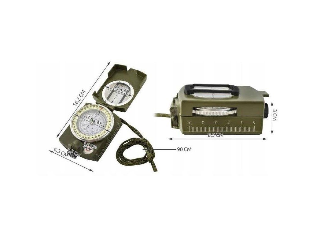 Mnoho činností vyžaduje kompas. Ať už se jedná o dlouhou trasu nebo houbaření v nezvládnutelné oblasti. Pokud nejsou žádné známky nebo jste přišli o svou cestu, můžete snadno určit směr kompasem. Náš set se skládá z trvanlivého vojenského kompasu, popruhu a praktického pásu s rychlým uvolněním. Kovové pouzdro je vodotěsné. Jehla je skladována speciální kapalinou, což umožňuje použití i při teplotách pod 0 ° Celsius. Navíc zajišťujeme vysokou přesnost jehly, což je základní požadavek, zejména při určování kardinálních bodů. Integrovaný kompas na kompasu lze použít k určení vzdálenosti a výpočtu přesně s konverzní tabulkou vytištěnou na zadní straně kompasu. Umožňuje určení vzdáleností topografických dat na mapě. Zadní stůl umožňuje převést palce a centimetry na metry. Kompas má přesnost 2 °, data lze číst díky fluorescenčnímu materiálu i ve tmě. I při uzavřeném krytu může být směr určen integrovaným zobrazovacím oknem. Skříň je vybavena ovládáním úrovně, takže můžete zkontrolovat, zda je kompas v optimální poloze a zda se jehla pohybuje volně. Kompas lze namontovat na stativ pomocí vnitřního závitu na spodní straně.