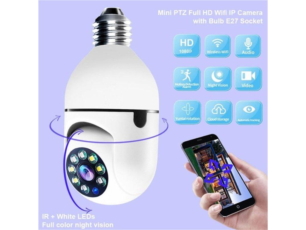 - HD 1080P kamera ve formě žárovky s otočnou hlavou horizontálně i vertikálně.