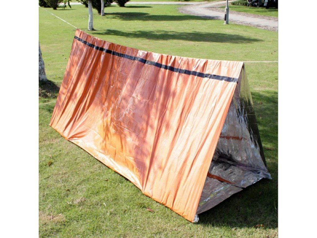 - Skládací záchranný stan vyrobený z vysoce kvalitního materiálu zadržujícího teplo (NRC)