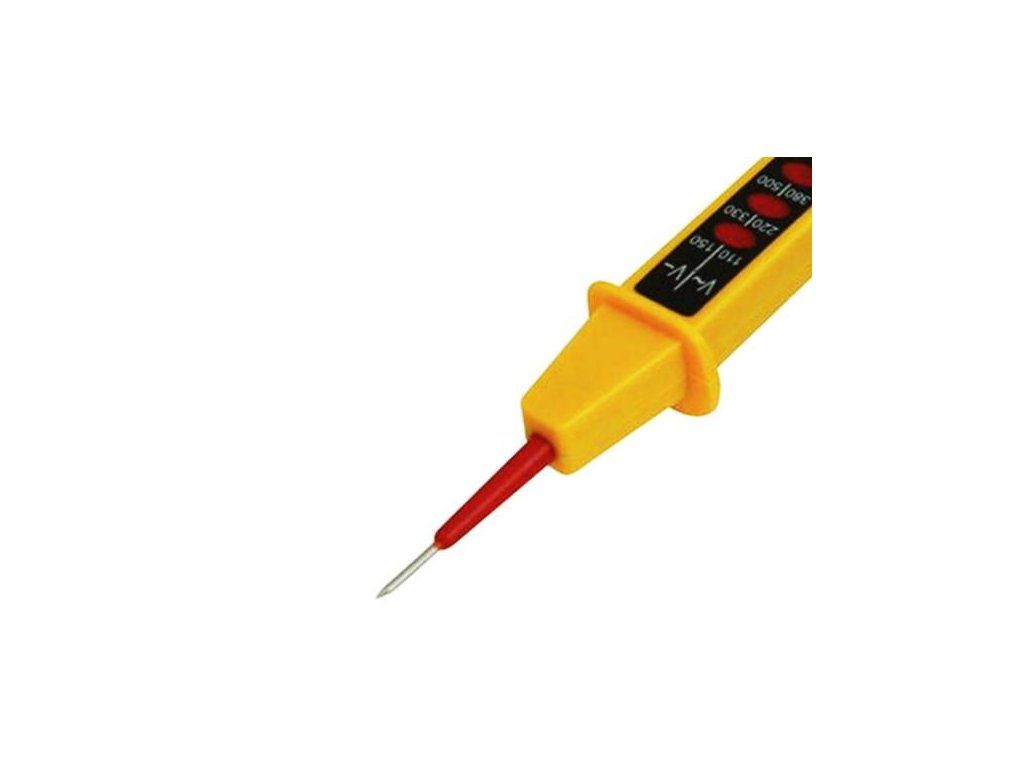 Praktická zkoušečka napětí pro kutily a elektrikáře. Pevná a jednoduchá konstrukce zkoušečky dovoluje přístroj přenášet, snese i hrubé zacházení. Měří stejnosměrné i střídavé napětí, 3 rozsahy měření - střídavé 110V, 220V, 380V a stejnosměrné 150V, 300V, 500V. Měří střídavé i stejnosměrné napětí.
